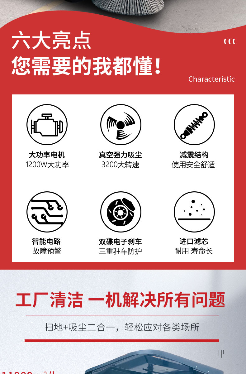 - HRD-1900 B款電動(dòng)掃地車(chē)是宏瑞達(dá)環(huán)保根據(jù)市場(chǎng)客戶需求特研一款全封閉電動(dòng)清掃車(chē),小巧靈便,轉(zhuǎn)彎半徑小,令設(shè)備行駛靈活,操作方便,清掃寬度大可達(dá)1900mm,連續(xù)工作時(shí)間可達(dá)4-5小時(shí),主刷邊刷可獨(dú)立控制,輪式塵箱,清空塵箱非常方便,擁有真空吸塵系統(tǒng),加長(zhǎng)濾芯,無(wú)揚(yáng)塵煩惱,用于工廠車(chē)間、商場(chǎng)、車(chē)站、廣場(chǎng)公園、景區(qū)等場(chǎng)所清掃效果會(huì)更加顯著。