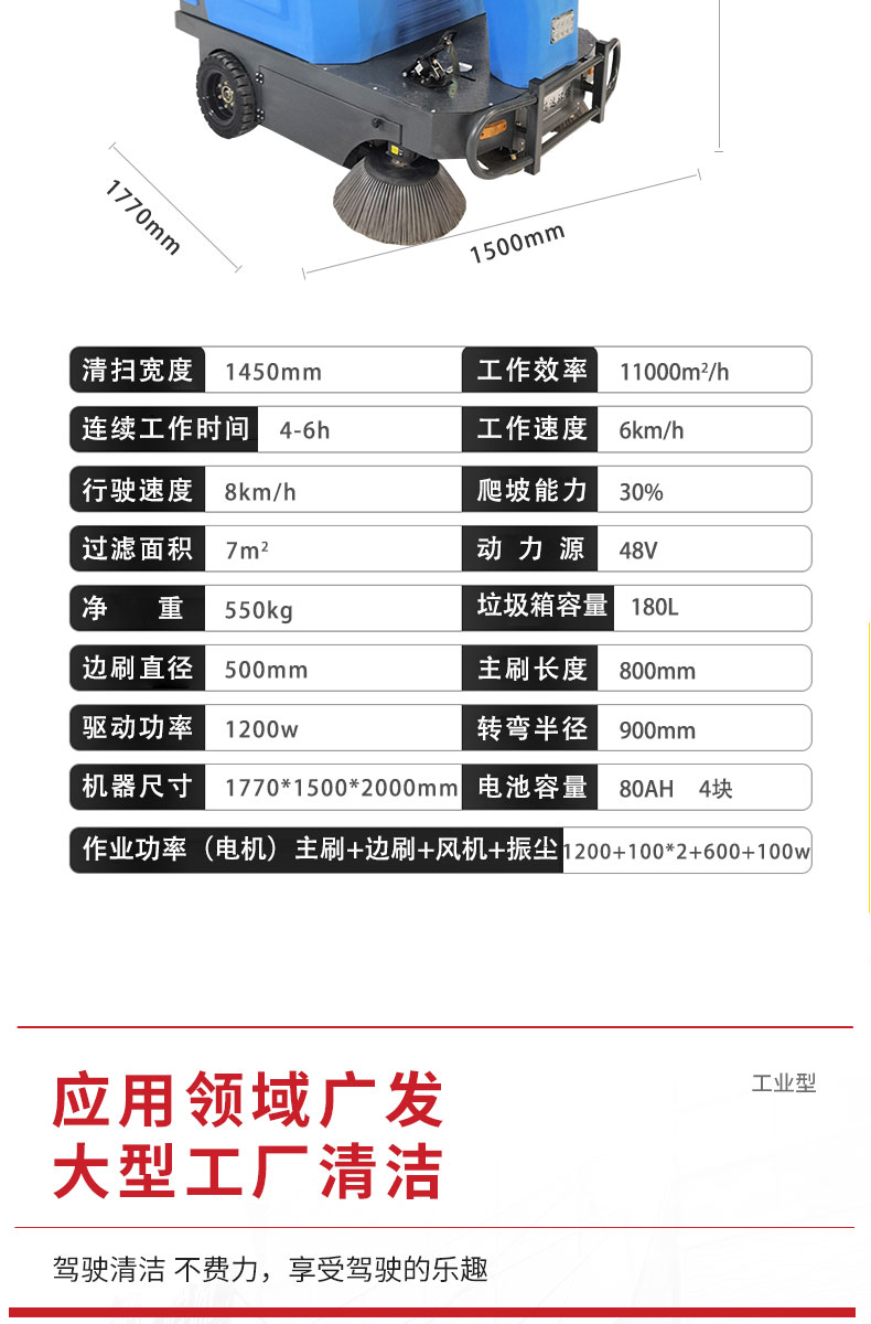 HRD-1550駕駛式掃地車(chē)是宏瑞達(dá)環(huán)保根據(jù)市場(chǎng)客戶需求特研一款駕駛式電動(dòng)清掃車(chē),小巧靈便,轉(zhuǎn)彎半徑小,令設(shè)備行駛靈活,操作方便,清掃寬度大可達(dá)1550mm,連續(xù)工作時(shí)間可達(dá)4-6小時(shí),升級(jí)加大主刷邊刷可獨(dú)立控制,全新升級(jí)滾塑車(chē)身,輪式塵箱,清空塵箱非常方便,擁有真空吸塵系統(tǒng),加長(zhǎng)濾芯,無(wú)揚(yáng)塵煩惱,用于工廠車(chē)間、商場(chǎng)、車(chē)站、廣場(chǎng)公園、景區(qū)等場(chǎng)所清掃效果會(huì)更加顯著。