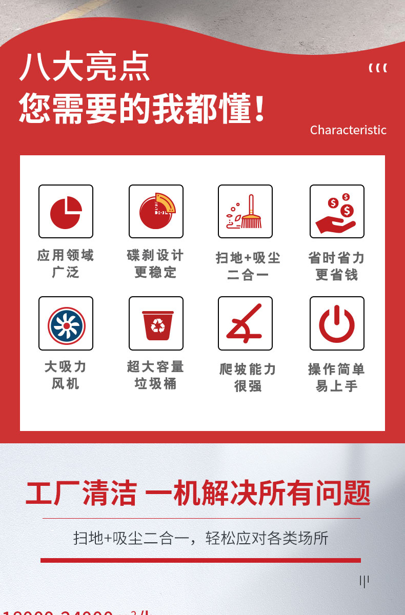 - HRD-2100全封閉掛桶式掃地車擁有國內(nèi)先進的清掃拋甩技術(shù),塵箱利用率理論值很高,清掃寬度可達2100mm,可連續(xù)工作6-8小時,灰塵 石子 落葉 煙頭煙灰 木屑 瓜果等一掃而凈,特別適合煤礦、水泥廠、雕刻廠、面粉廠、建材廠、金屬冶煉廠、工廠車間、商場、車站、學校、機場外圍、廣場公園、景區(qū)等場所使用。