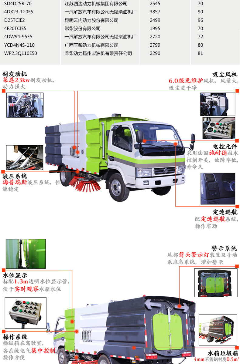 - HRD-SL1大型柴油掃路車是一種集路面清掃、垃圾回收和運輸為一體的新型高效清潔設備清掃寬度為2100mm,可以長時間連續(xù)工作,主要用于地面清掃、馬路道牙邊清掃、馬路道牙清洗等工作,適用于各種氣候和不同路面的清掃工作,適合于廣場、公路、住宅小區(qū)、停車場、碼頭、機場、車站、水泥廠、電廠等場所的清潔除塵。