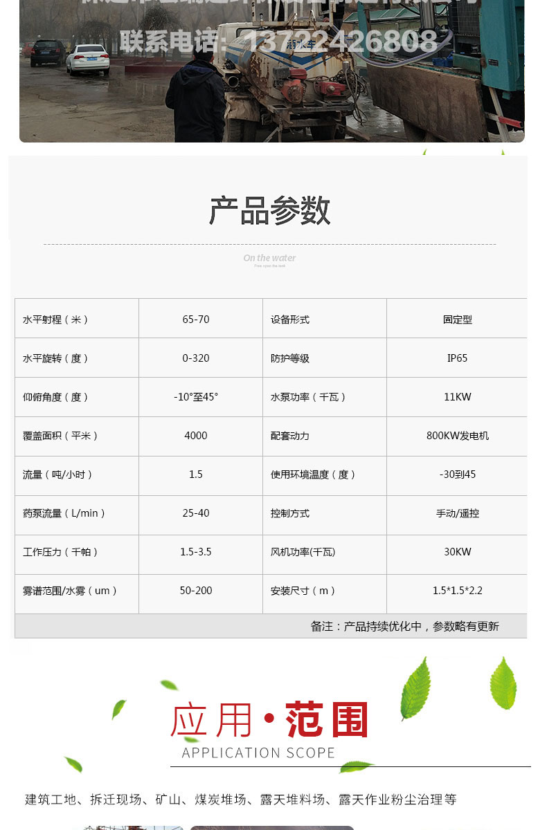 遠(yuǎn)程噴霧機(jī),是露天礦場、煤場、散料港口碼頭等礦粉料采掘、破碎、篩分、裝卸、儲運設(shè)施的除塵方案。適用于煤場、礦區(qū)、煤炭堆場、港口煤場、電廠、鋼廠、焦炭等粉塵污染治理。