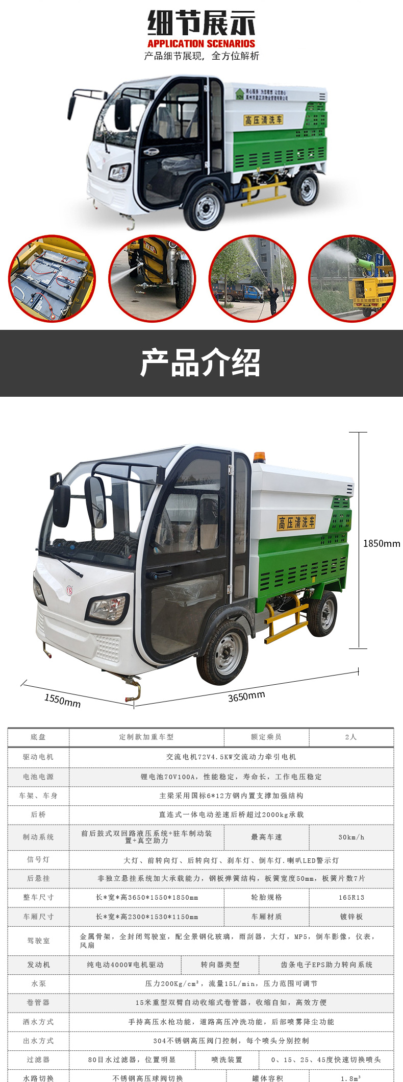 蓋等其他公共設(shè)施造成損壞。采用優(yōu)質(zhì)加重型電動(dòng)四輪車底盤操作簡單,載重性好,通過性
