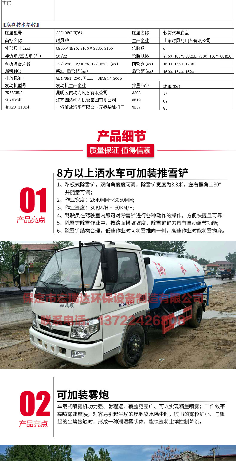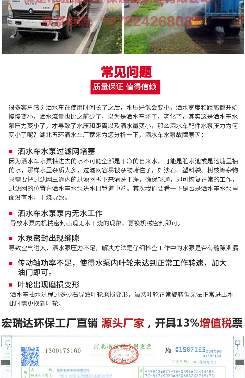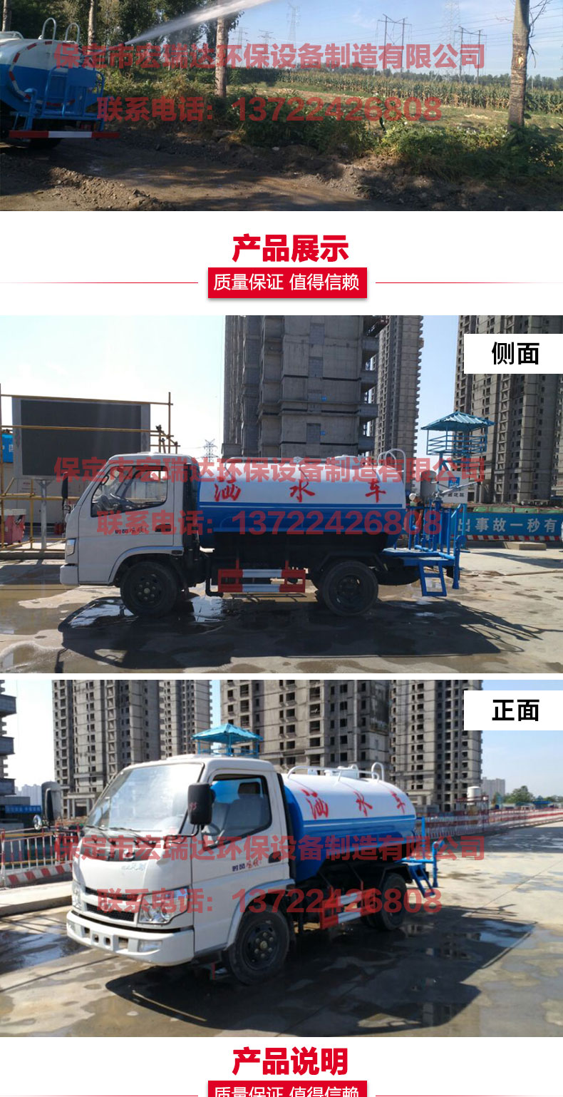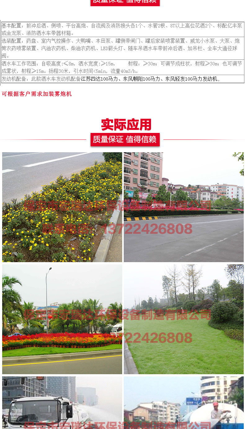 灑水車適合于各種路面沖洗,樹木、綠化帶、草坪綠化,道路、廠礦企業(yè)施工建設,高空建筑沖洗。具有灑水、壓塵、高、低位噴灑,農藥噴灑、護欄沖洗等功能,還具有運水、排水,應急消防。