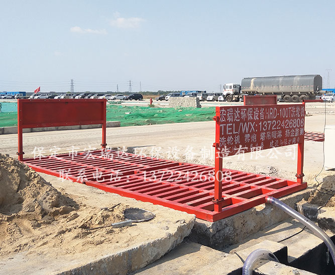 宏瑞達洗輪機100T利用多方位高壓水槍對輪胎及底盤部位進行高壓沖洗,沖洗速度快而且能夠自動完成沖洗工作,宏瑞達工程洗輪機沖洗壓力能達到3-4kg/cm²,沖洗壓力大,出水口多,沖洗水量足。避免了人工沖洗過程中沖洗速度慢,清洗不干凈,耗費時間造成水資源浪費。