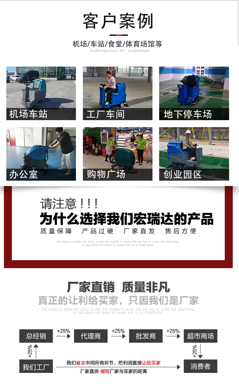 - HRD-ET60洗掃一體機采用的是洗地、掃地于一體的滾刷系統(tǒng),機器的滾刷系統(tǒng)可將木屑、螺絲、輕金屬碎片、紙屑等固體垃圾收集到垃圾盒內(nèi),避免垃圾堵塞破壞吸水系統(tǒng);同時清洗干凈地面。擁有一臺宏瑞達滾刷式洗掃一體機即相當于同時擁有一臺盤刷式洗地機和一臺掃地機。對于粗糙地面和地面縫隙內(nèi)的污垢清洗,本產(chǎn)品的效果更非盤刷式洗地機所能比擬,能夠在更為復(fù)雜的環(huán)境下為高難度清潔作業(yè)提供很好的深度清潔體驗。 HRD-ET60洗掃一體機應(yīng)用于各類商業(yè)或工業(yè)區(qū)域,能夠?qū)τ趥}庫、物流中心、商業(yè)中心、體育場館等環(huán)境下不同材質(zhì)的地面進行深度清洗。