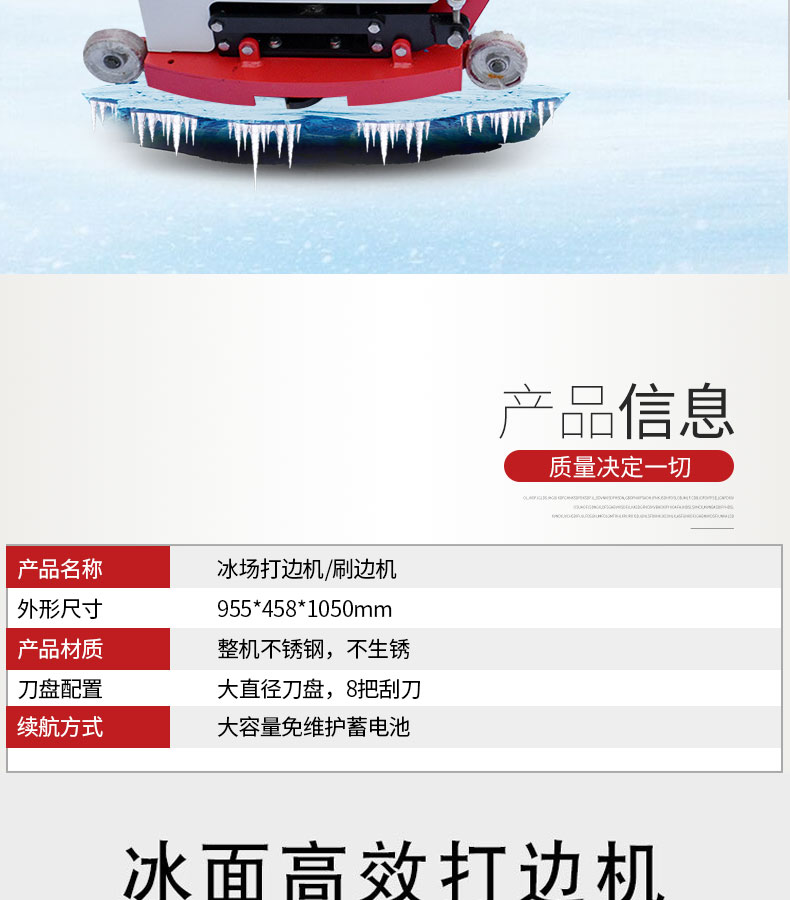 - 宏瑞達(dá)鏟(澆)冰車是一種冰面修整設(shè)備,采用推鏟、滾刮、清渣、灑水的組合方式,及時(shí)地處理由各種原因造成的凹凸不平的冰面,迅速、高效的將損傷的冰面變成專業(yè)水準(zhǔn)的冰場(chǎng) 該設(shè)備適用于各種冰場(chǎng)的維護(hù)和日常保養(yǎng)。