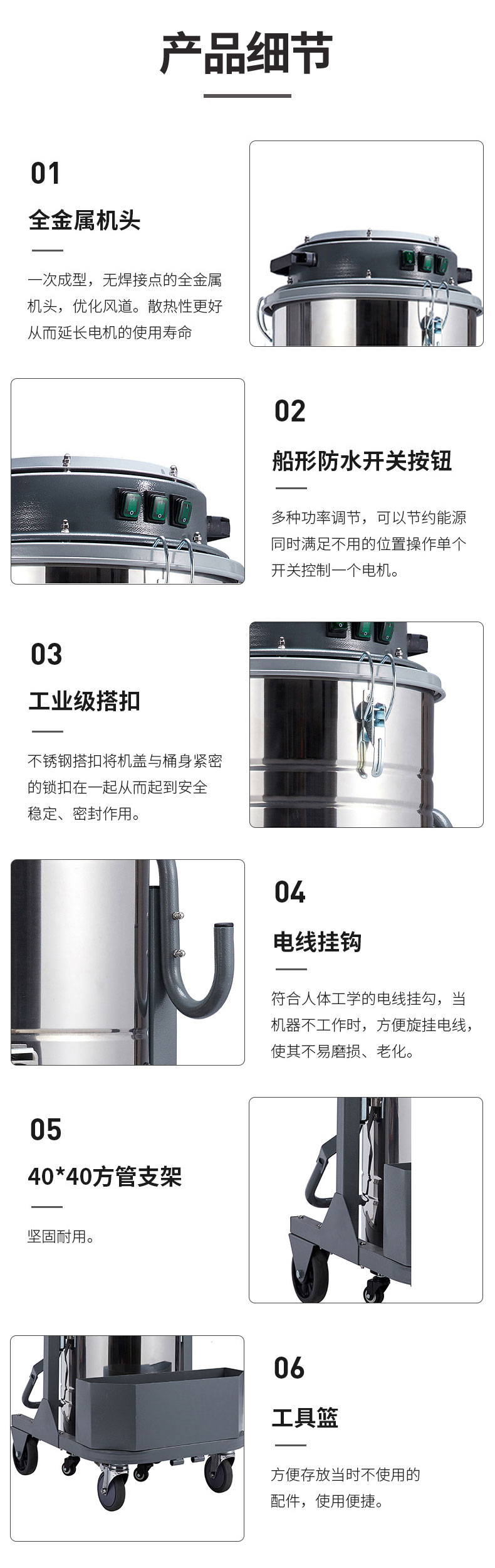 真空系列工業(yè)吸塵器是本公司專為工廠生產(chǎn)區(qū)內(nèi)含有大量微細(xì)粉塵的吸塵或輸送物料的清潔設(shè)備,相比其它種類的吸塵器,它的突出特點(diǎn)是配有自動(dòng)物理振塵清灰系統(tǒng),可停機(jī)后自動(dòng)清理濾筒,防止濾筒堵塞,保證設(shè)備的吸塵效果,保護(hù)電機(jī)免受過(guò)載。具有風(fēng)量大、壽命長(zhǎng)、噪音低、性能穩(wěn)定,可長(zhǎng)時(shí)間連續(xù)運(yùn)作等顯著特點(diǎn),能合理的配套于切削、打磨、鉆孔,印染,制藥,陶瓷制作等行業(yè)的設(shè)備的清潔工作,是市場(chǎng)上性能最完備,應(yīng)用最為廣泛的吸塵器,既能回收固體顆粒物,又能凈化含塵氣體的多功能產(chǎn)品。